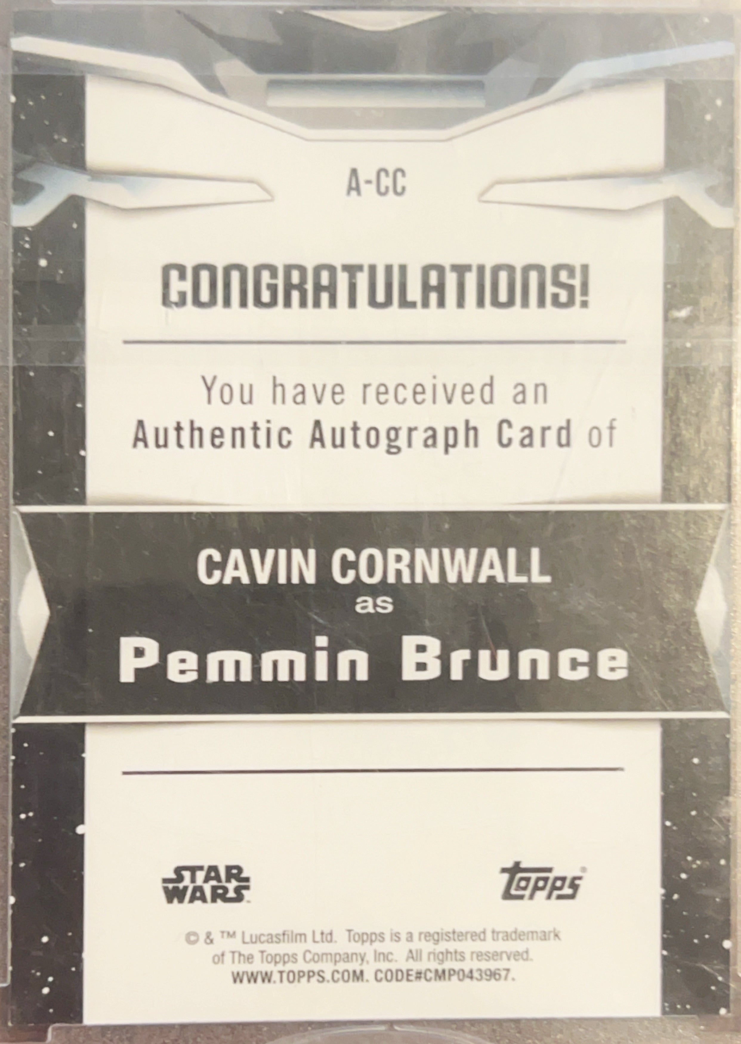 2021 Topps Star Wars Signature Series Cavin Cornwall Authentic Autograph #A-CC